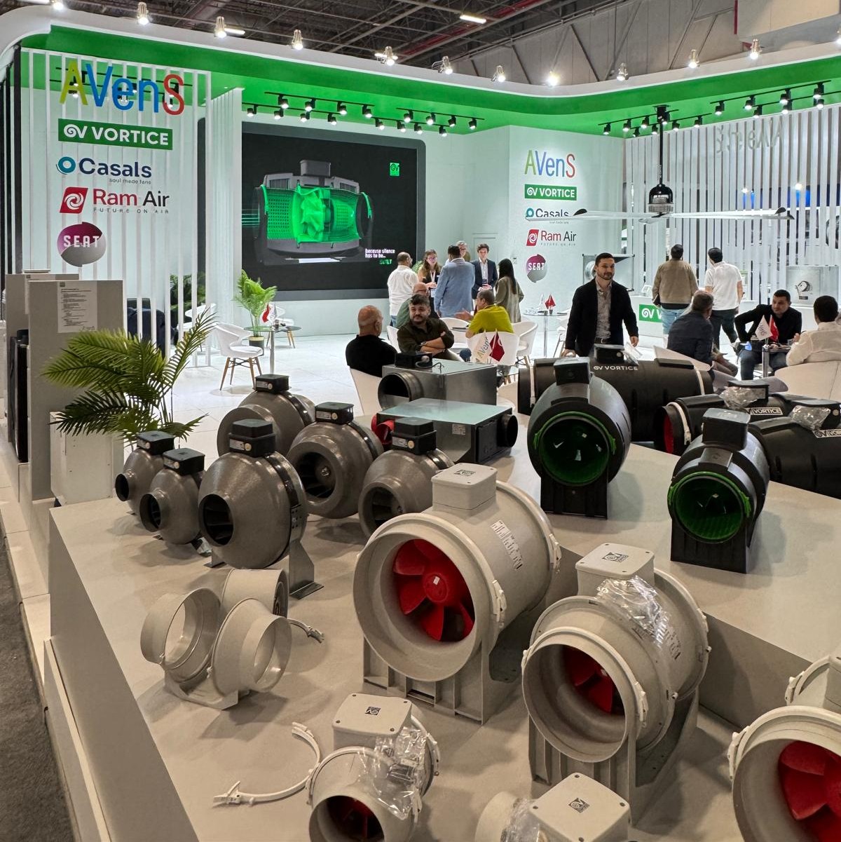 AVenS Havalandırma standı, firmanın Türkiye distribütörlüğünü yürüttüğü Vortice ve Casals markalarına ait birçok yeni nesil havalandırma ürününü barındırdı.