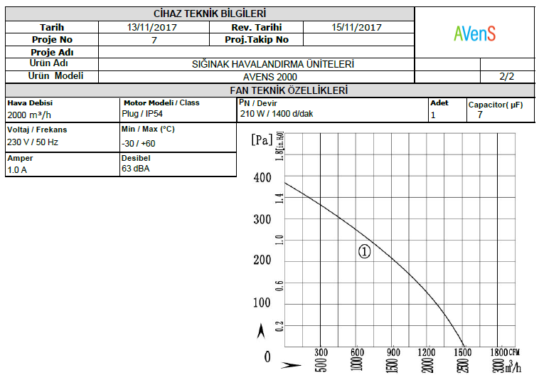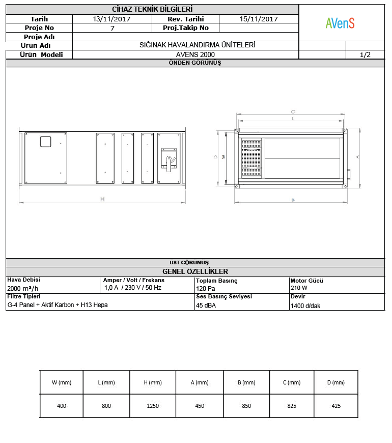 BVU 2000 - Sığınak Havalandırma Ünitesi 2000 m³/h