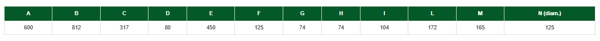 • 125 mm nominal çaplı borular için bağlantı çıkışları.