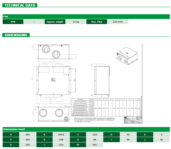• Çekilmiş hava (bayat) ve besleme (temiz) hava için 2 x ISO COARSE %45 (G3) filtre; çekme portu için ISO COARSE %65 (G4) filtre, besleme portu için ePM10 %50 (M5), ePM1 %55 (F7) ve ePM1 %80 (F9) filtreler isteğe bağlı olarak mevcuttur.