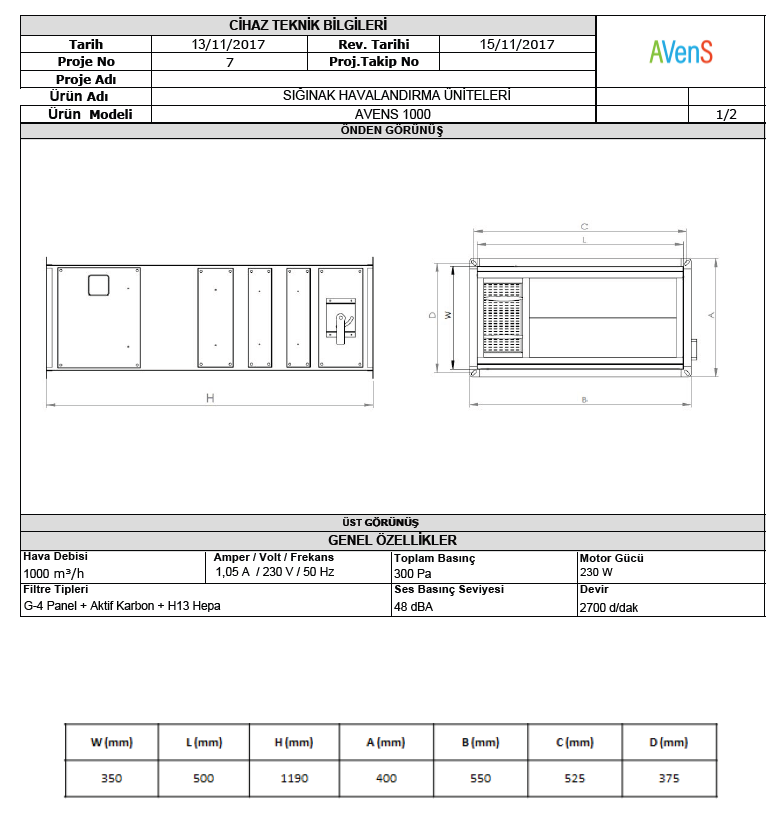 BVU 1000 - Sığınak Havalandırma Ünitesi 1200 m³/h